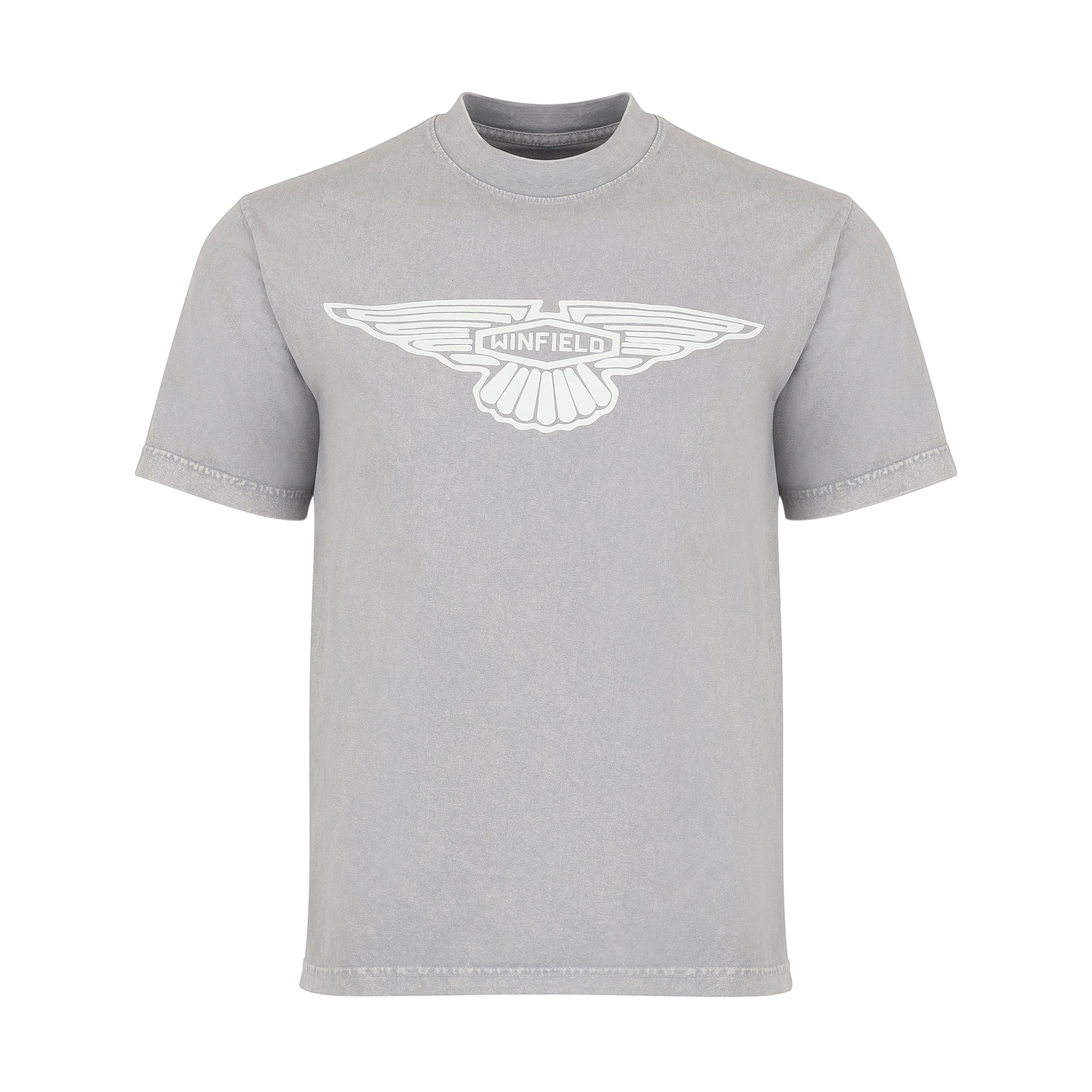 Crafted in Los Angeles with utmost care. This classic t-shirt features a captivating Winfield emblem that takes inspiration from vintage automobilia. The round neckline and relaxed fit add a touch of effortless sophistication to this essential wardrobe piece. Winfield logo is screen printed on the center front.
